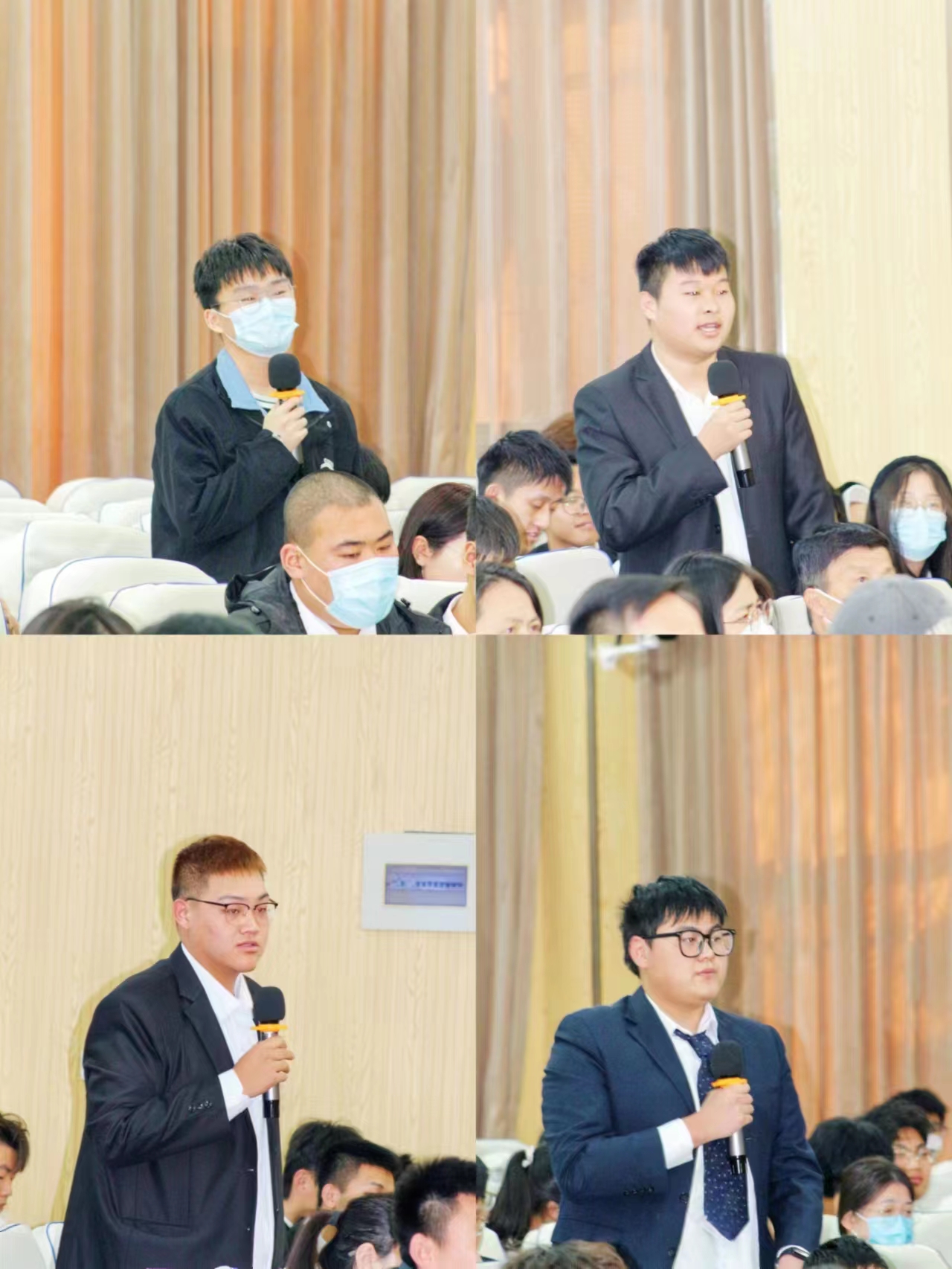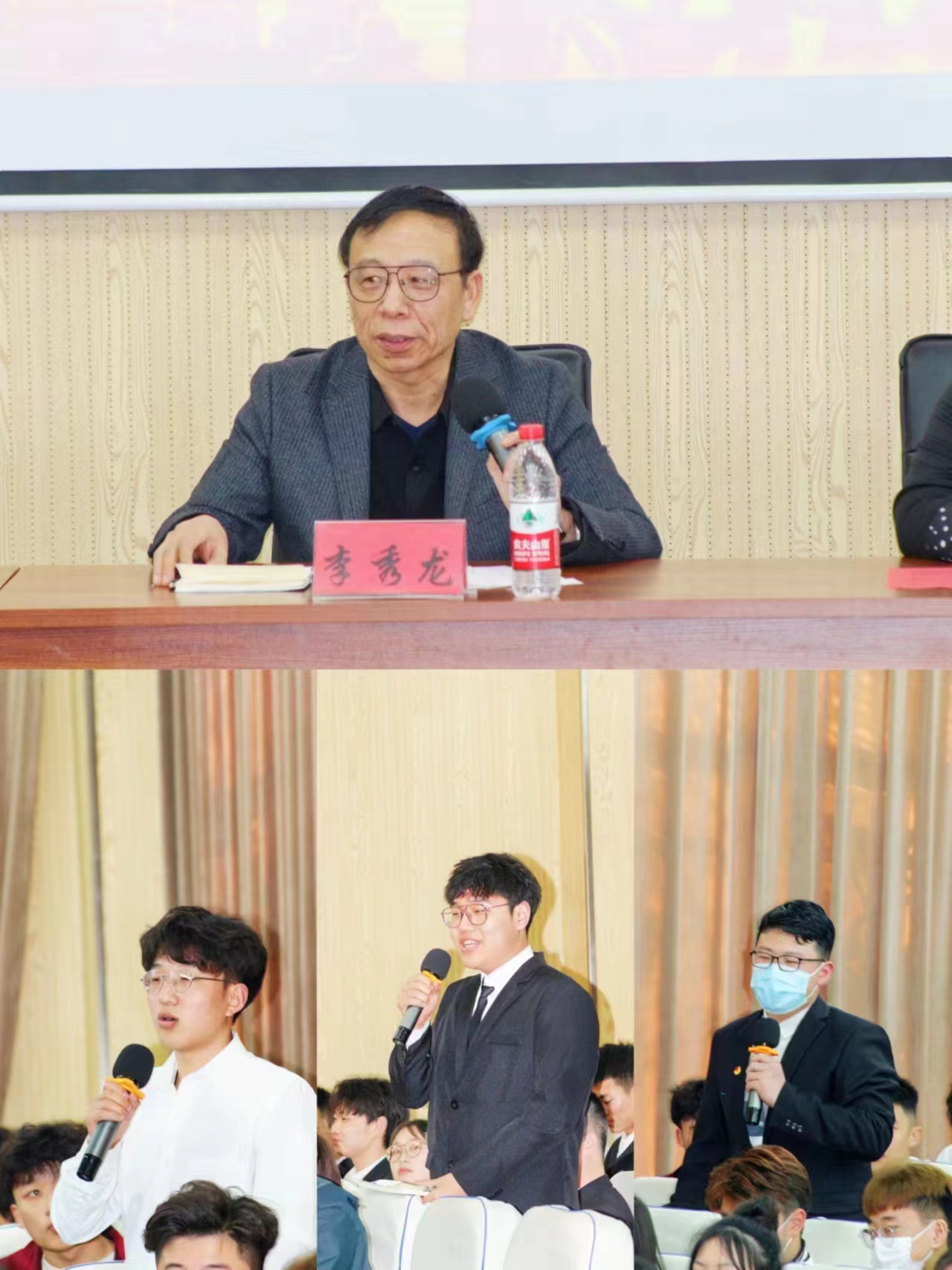 在师生交流环节中洋溢着青春活力的学生干部们积极提问,踊跃发言,大胆的提出自己内心的疑惑与担忧,为学院管理方面贡献宝贵的意见和建议。李秀龙院长一一耐心解答并记录,会议的氛围持续高涨。交流活动中师生们响起了一阵又一阵的热烈掌声,此次活动达到高潮。
