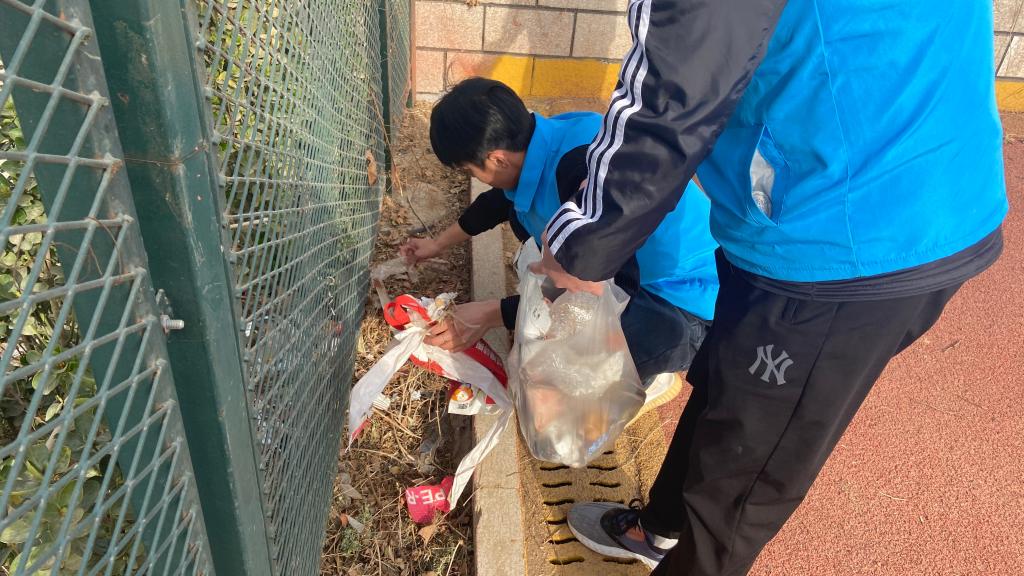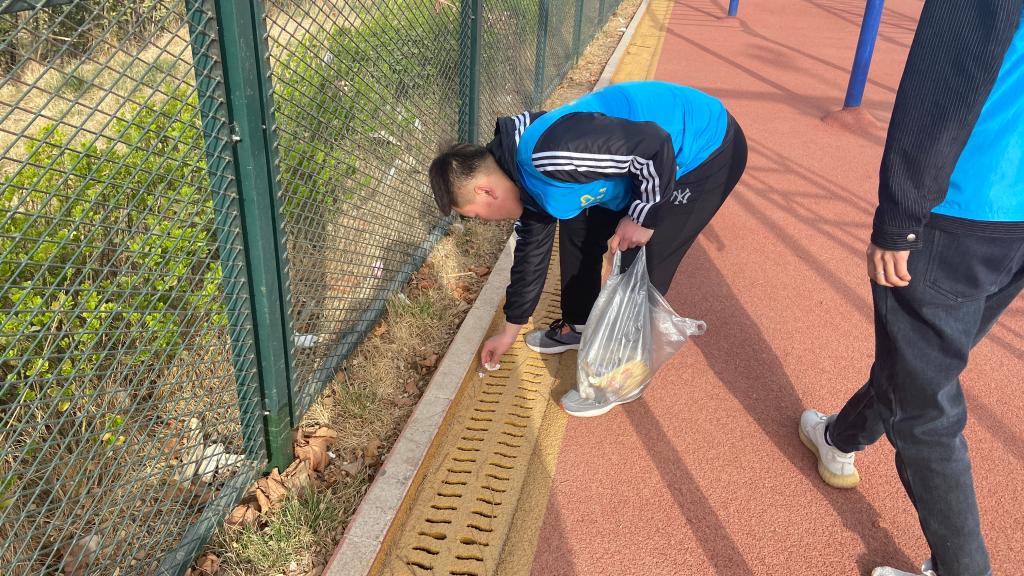 将地上的纸皮、零食包装壳、烟头等垃圾一一拾起,不放过任何一个角落,让受到污染的道路回归其最本真、最干净的形象,打造一个干净整洁、美观舒心的校园生态环境,深刻铸造良好的清洁意识与校园主人翁精神。