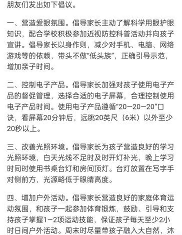 为调动家长对学生近视防控的积极性,班主任召开线上家长会,引导家长提高家庭眼保健意识,营造爱眼护眼的健康家庭氛围。
