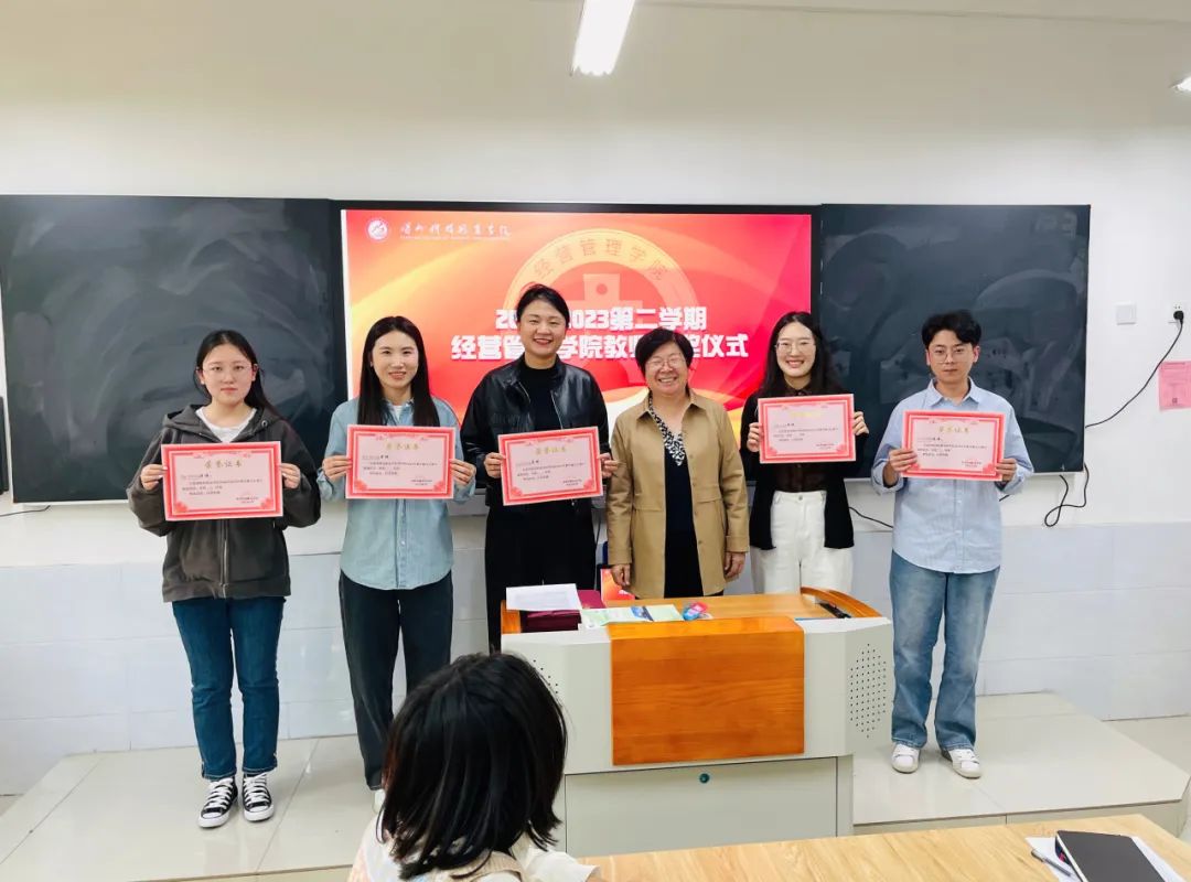 会议伊始,经营管理学院常务副院长李岩为上学期教学能力比赛和“说专业 说课程”比赛获奖教师颁奖。