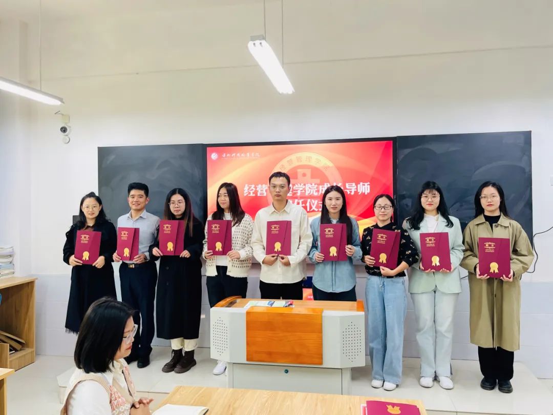经营管理学院制发成长导师方案,杨婷、李岩为成长导师颁发聘书。