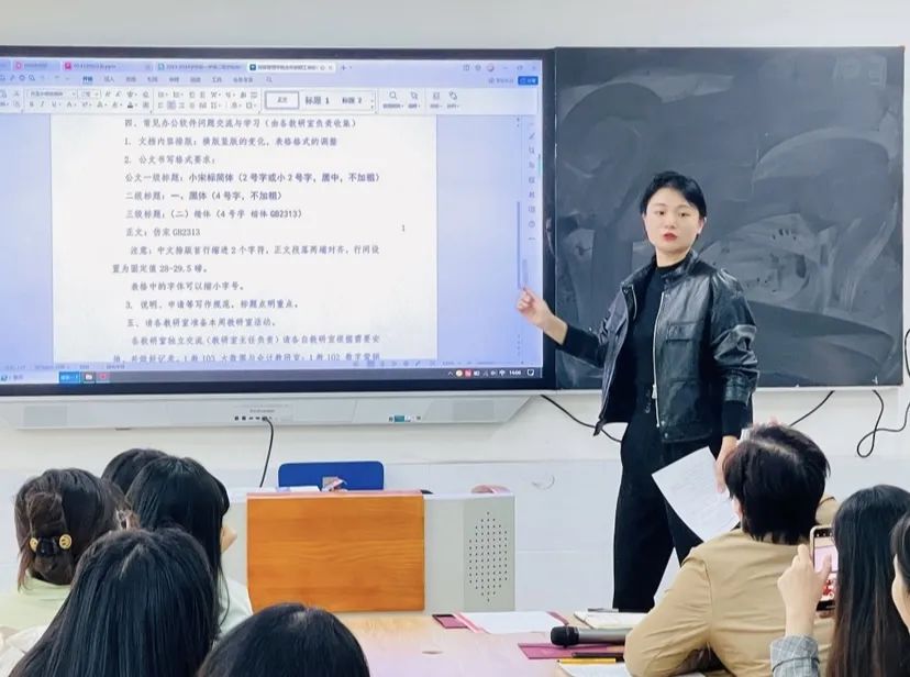 李岩带领大家学习《2023-2024学年第一学期二级学院常规考核细则》,并分配考核任务,监督老师上课质量。