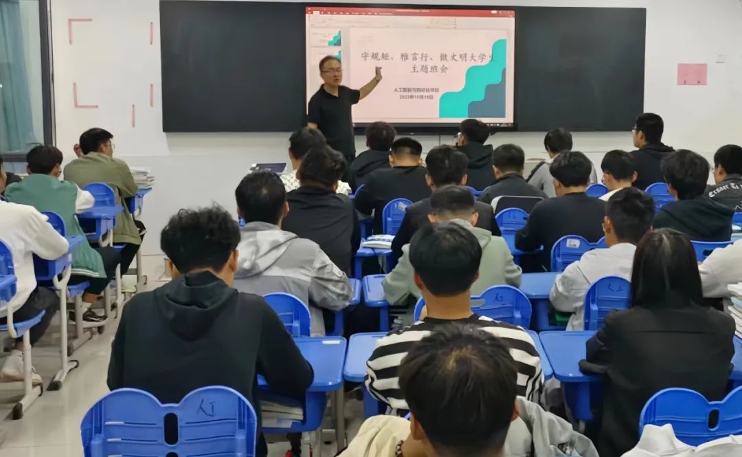 此外,各班级辅导员开展了一系列有关于“守规矩、雅言行、做文明大学生”主题班会,结合各班级学风的实际情况,倡导学生形成优良学风,并围绕《学生手册》中的行为规范、管理规定及考勤制度等常规管理方面重点讲解。主题班会的召开对规范学生的日常行为及学习习惯有重要意义。