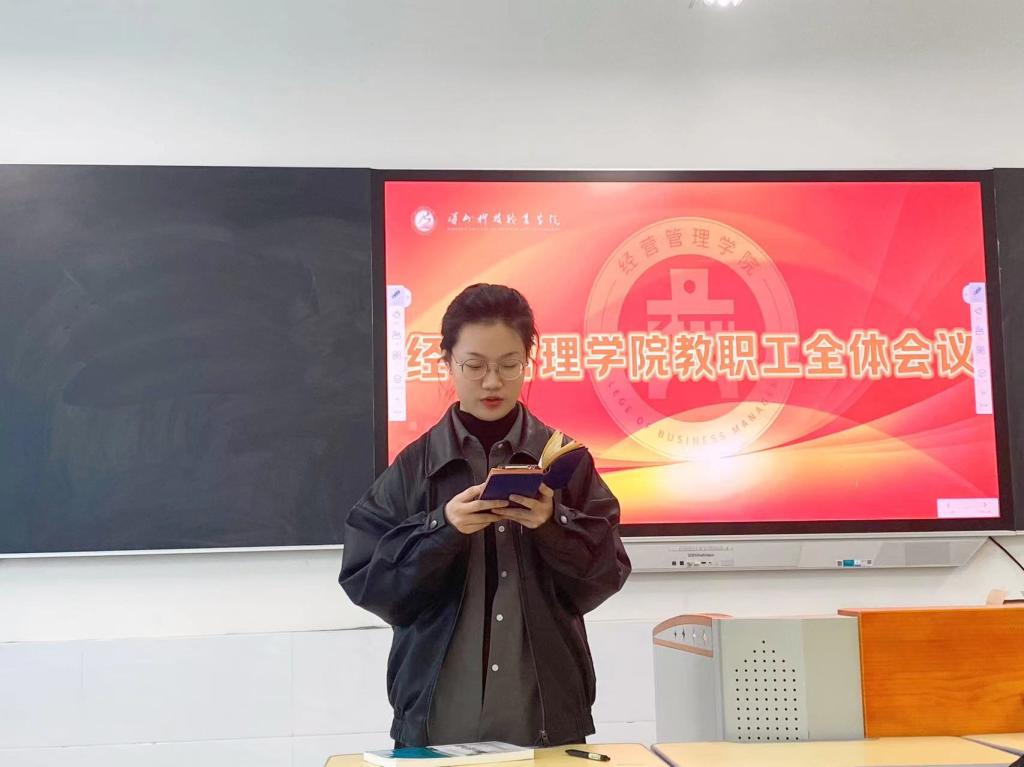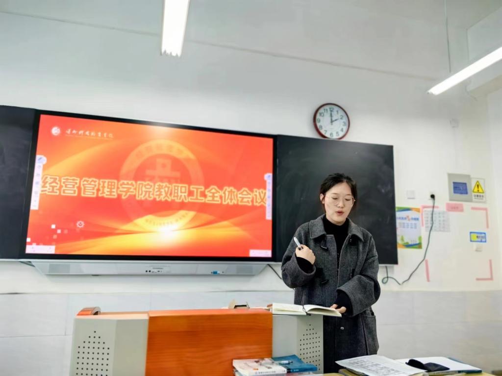 此次教职工全体会议凝聚经营管理学院全体教职工的智慧和力量,必将推动学院事业不断向前发展,相信在全体教职工辛勤付出和奉献下,共同书写学院发展的新篇章!