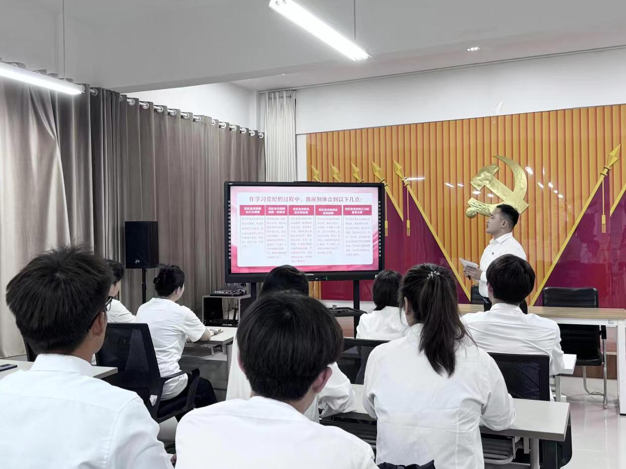 本支部全体党员以及入党积极分子代表来讲述自己对《中国共产党纪律处分条例》的学习与体会。深刻认识修订《条例》的重要意义、主要内容、适用范围,学习全体党员受警醒、明底线、知敬畏。大家讲解并学习政治纪律、组织纪律、群众纪律、廉洁记录、工作纪律和生活纪律等“六大纪律”,同时强调了入党积极分子在推优过程中的纪律问题,在入党积极分子培训班中应形成学纪、知纪、明纪、守纪的良好学习氛围。