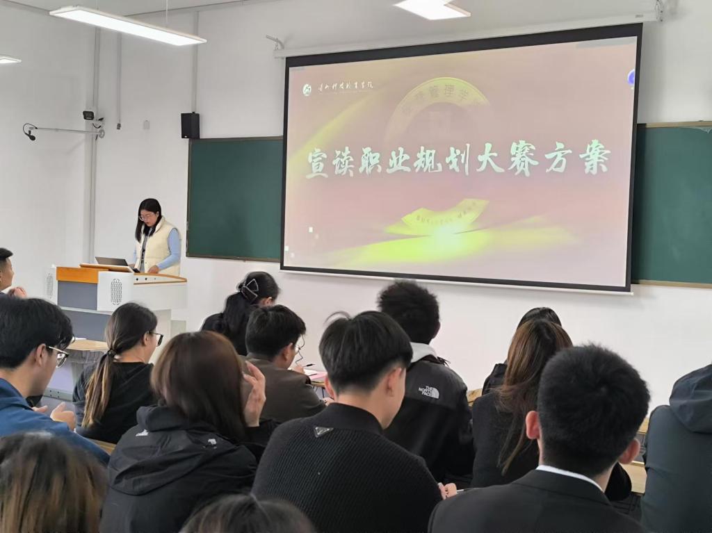 辅导员王孟凡宣读了经营管理学院职业生涯规划大赛院赛的方案,并强调本次比赛在自我认知、学习成长、实践创新以及社会进步等方面的意义,激发同学们的参赛热情。