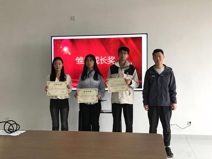 学管负责人苏斌为辅导员颁发“雏鹰成长奖”荣誉证书。