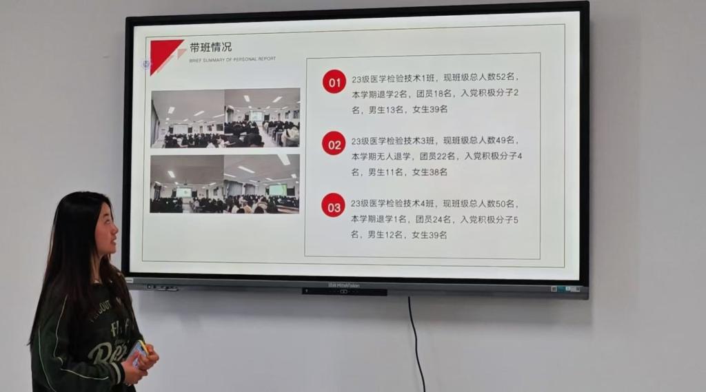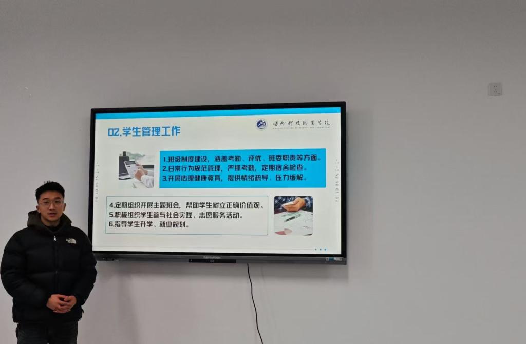 述职汇报中,各位辅导员总结了2024学年度的个人工作实绩和育人成效,从带班情况、日常工作总结、反思与不足及未来工作计划等方面对予以全面总结。他们以详实的数据和生动的案例,饱满的热情和真挚的语言,展现了在这一年中以学生为中心付出的努力与汗水。同时,辅导员纷纷表示,将以此次述职为契机,不断改进工作方法,提高工作效率,为每一名学生的成长和发展而不断努力。