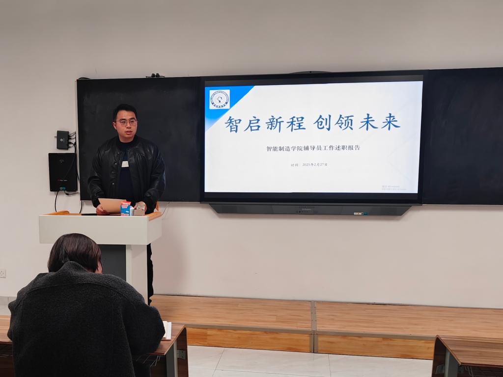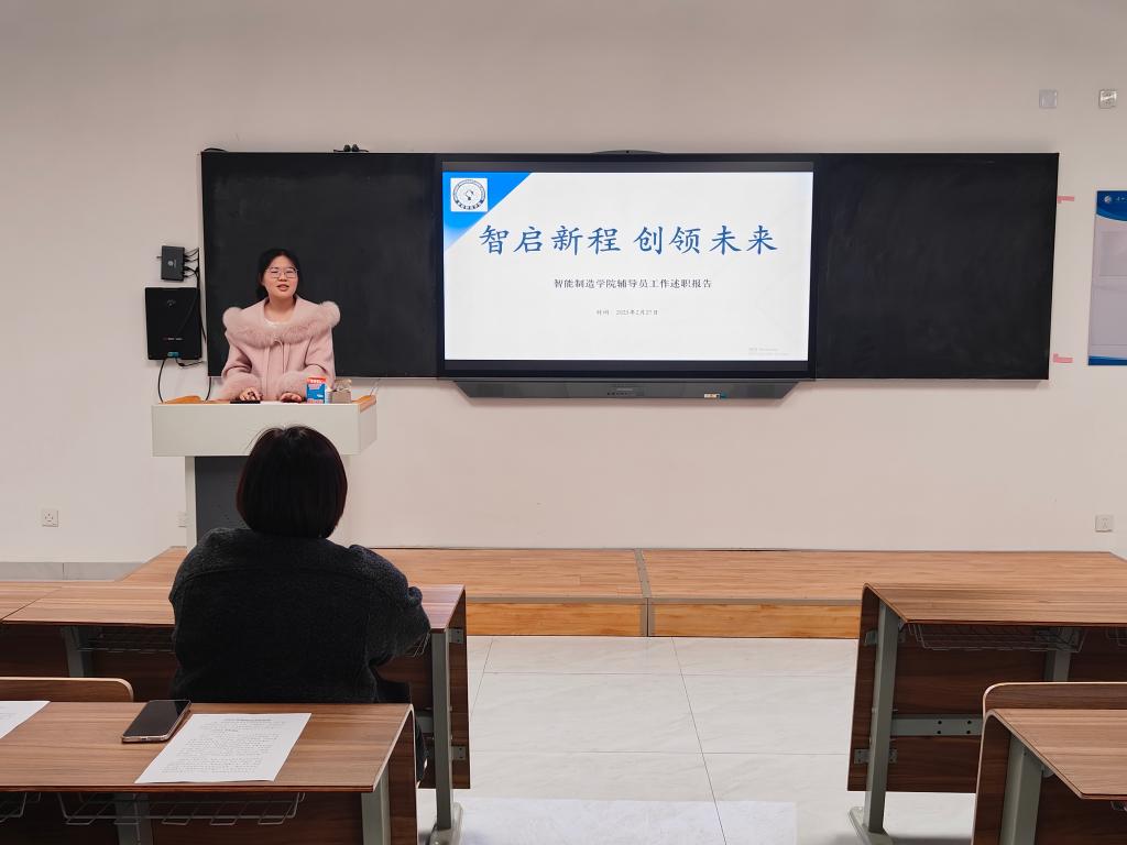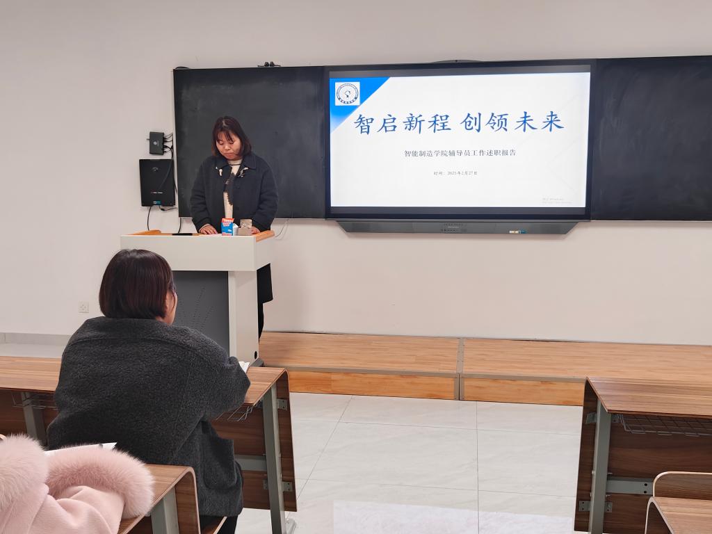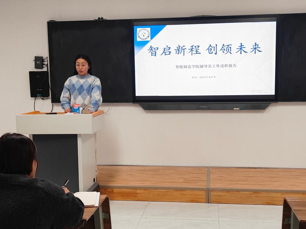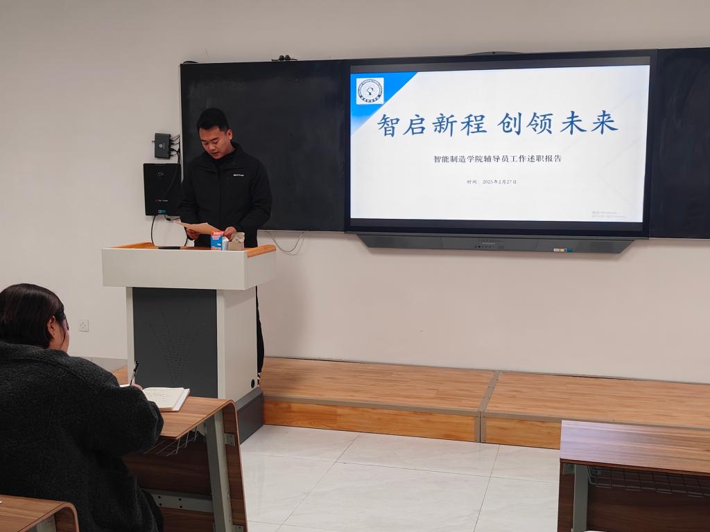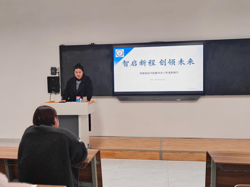 为进一步加强辅导员队伍建设,提升学生工作管理水平与服务质量,促进经验交流与成果共享,智能制造学院于2025年2月27日成功开展辅导员工作述职报告会活动。智能制造学院副院长杨新新及全体辅导员参与此次活动。