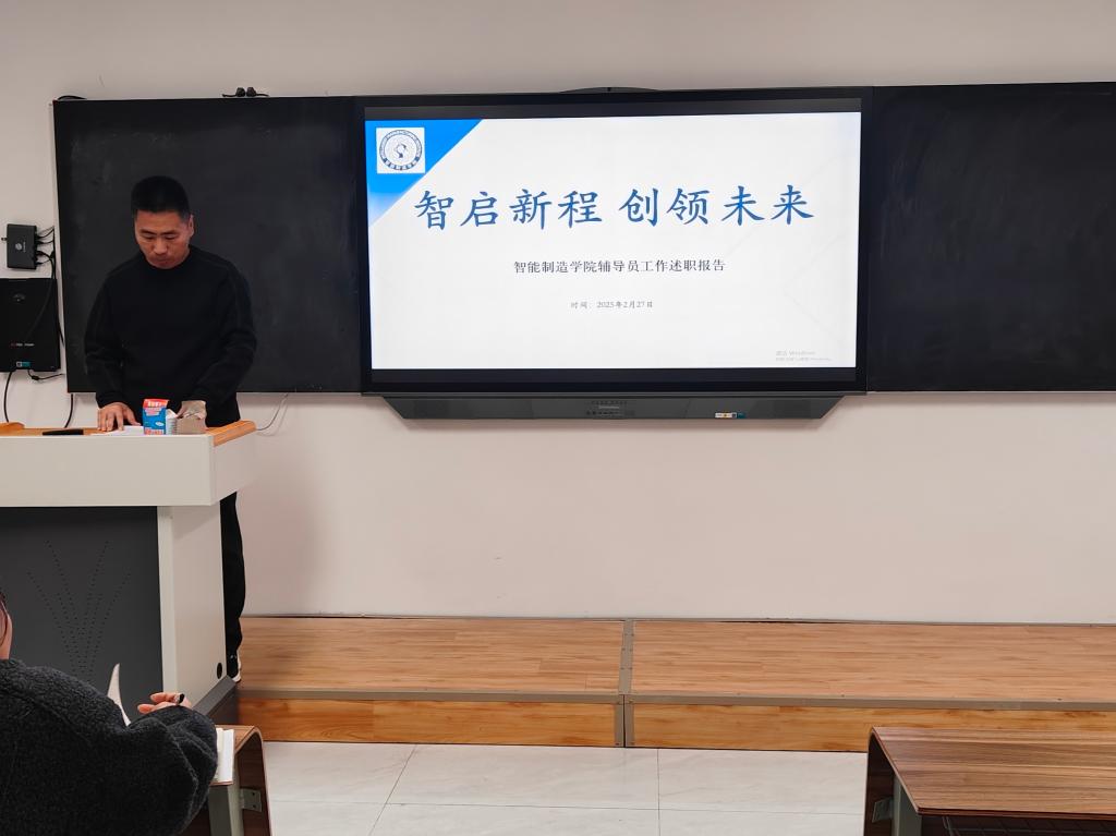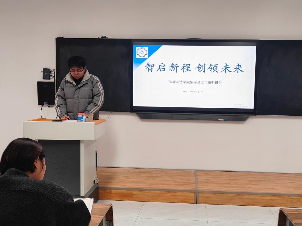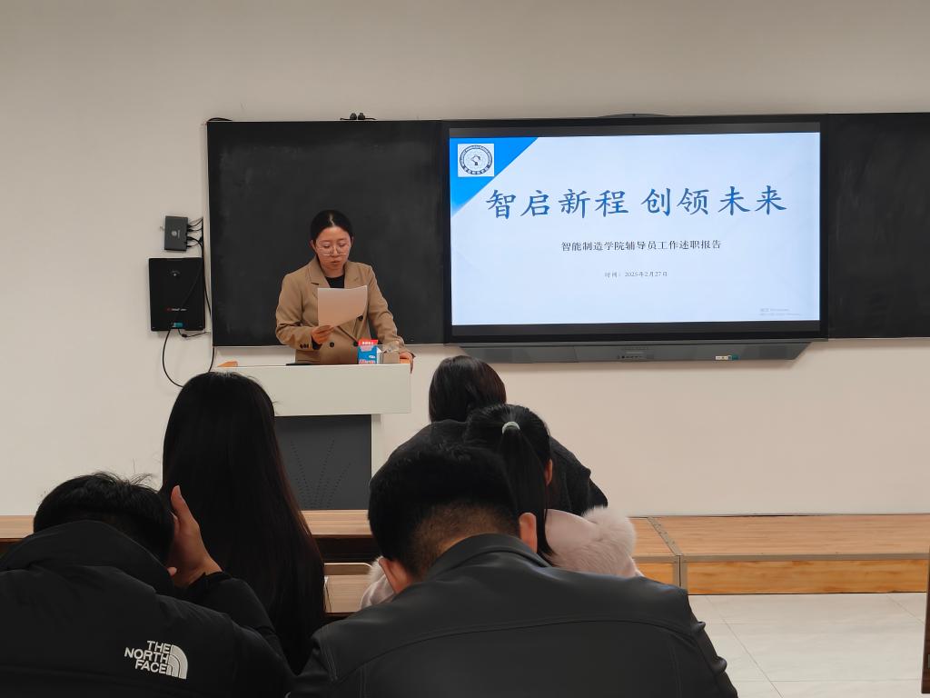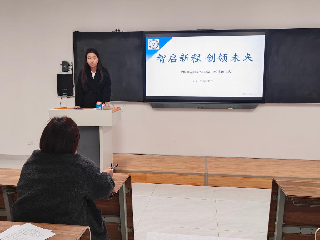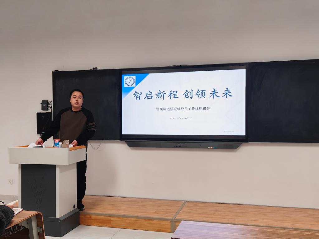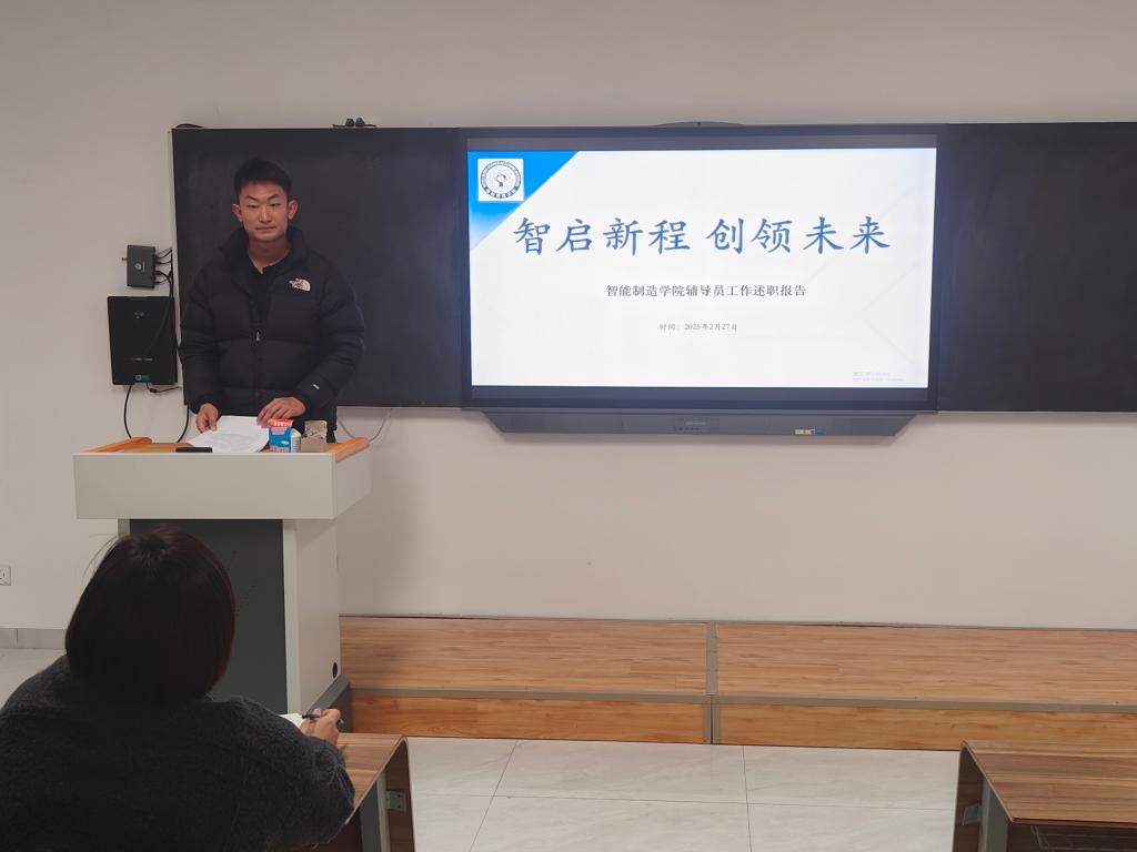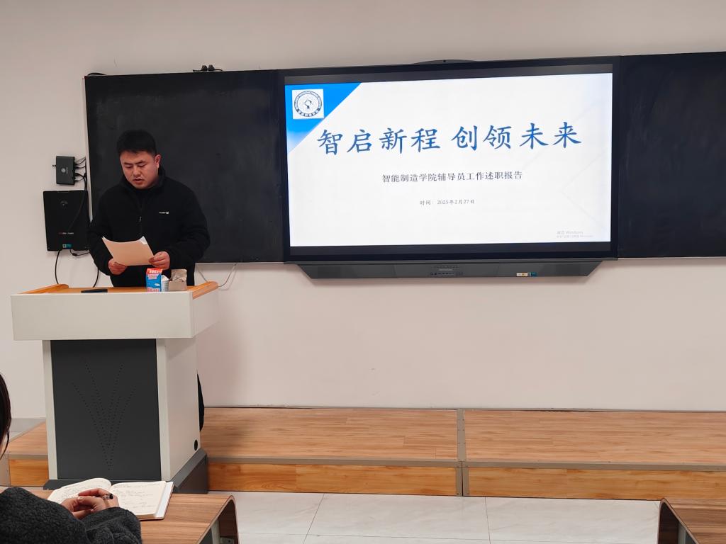 为进一步加强辅导员队伍建设,提升学生工作管理水平与服务质量,促进经验交流与成果共享,智能制造学院于2025年2月27日成功开展辅导员工作述职报告会活动。智能制造学院副院长杨新新及全体辅导员参与此次活动。
