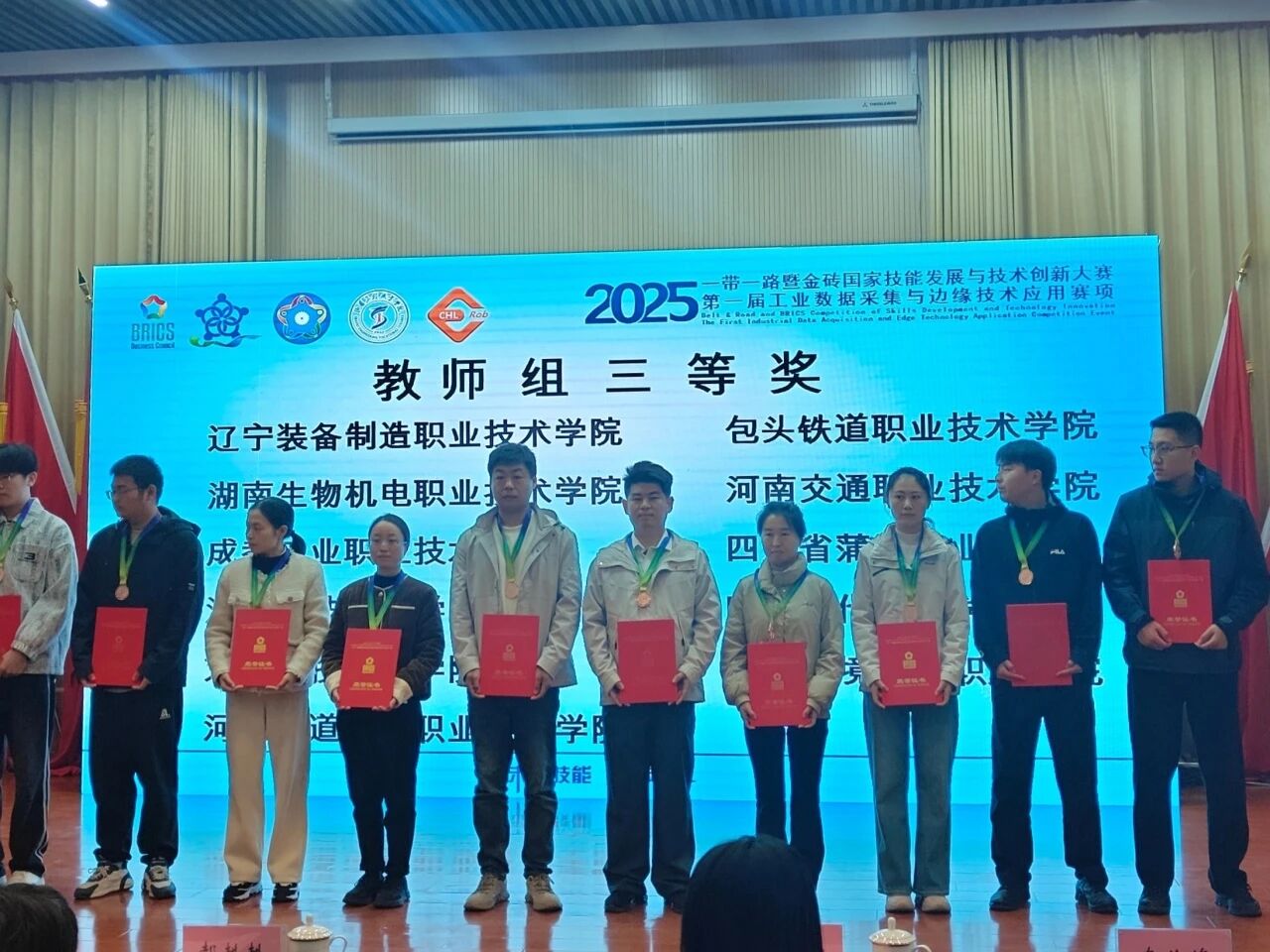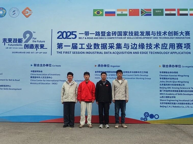近日,2025年“一带一路”暨金砖国家技能发展与技术创新大赛国家决赛圆满落幕。智能制造学院华晟经世团队李朝东、孙洪浩两位专业课教师在工业数据采集与边缘技术应用赛项的国家级决赛中脱颖而出,喜获教师组三等奖,二人指导的学生徐敬楠、苏志文也荣获学生组三等奖,充分展现我院师生扎实的专业素养和顽强的拼搏精神,更彰显学校深化产教融合、推进校企协同育人的显著成效。