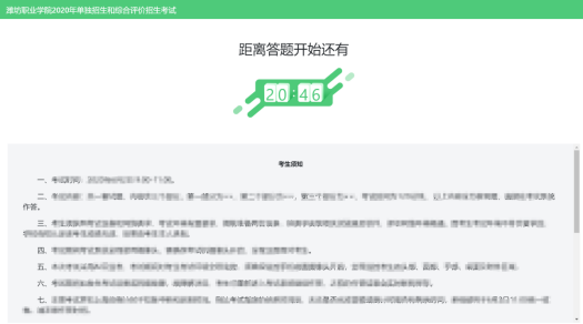 架设好鹰眼监控后,若未到考试开始时间,则先进入候考界面,认真阅读考生须知,做好笔试考试前的最后准备事项。(注意:准点和迟到登录的考生无候考页面)