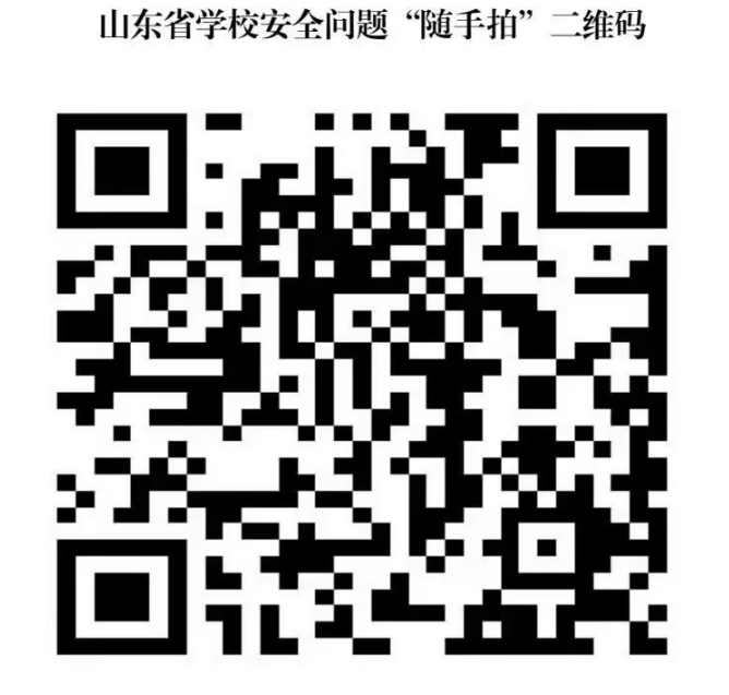“安全重于泰山”,为全力做好我校春季开学校园安全工作,对校园安全隐患做到早检查、早发现、早排除,全力维护全国“两会”期间学校安全稳定,现将学校安全问题“随手拍”二维码公示。如果您发现我们的校园安全工作存在消防安全隐患、用电安全隐患、食品安全隐患等对学生构成威胁的行为和问题,请您随手拍下照片和视频,扫描“随手拍”二维码并上传照片和视频,我们将转交有关单位对安全问题进行整改处理,让我们一起守护平安校园!