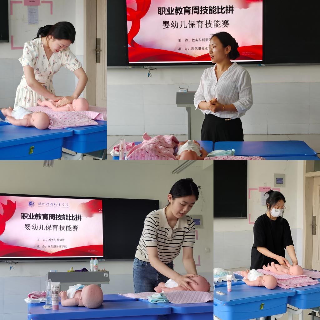 5月16日下午,婴幼儿托育服务与管理、高速铁路客运服务、空中乘务、旅游管理专业同时进行了技能比拼。