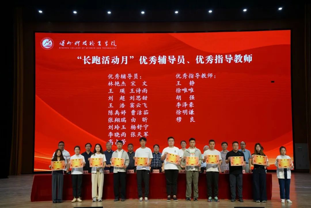 65名同学在有效跑步次数、距离上表现突出,被授予“优秀个人”称号,2024级婴幼儿托育服务与管理1班、2024级人工智能技术应用1班等20个班集体在阳光长跑中积极参与,被授予“优秀班集体”称号;17位辅导员在日常跑步过程中时刻鼓励学生,以身作则,被授予“优秀辅导员”称号;6位体育教师积极指导学生、规范跑步姿势,被授予“优秀指导教师”称号。