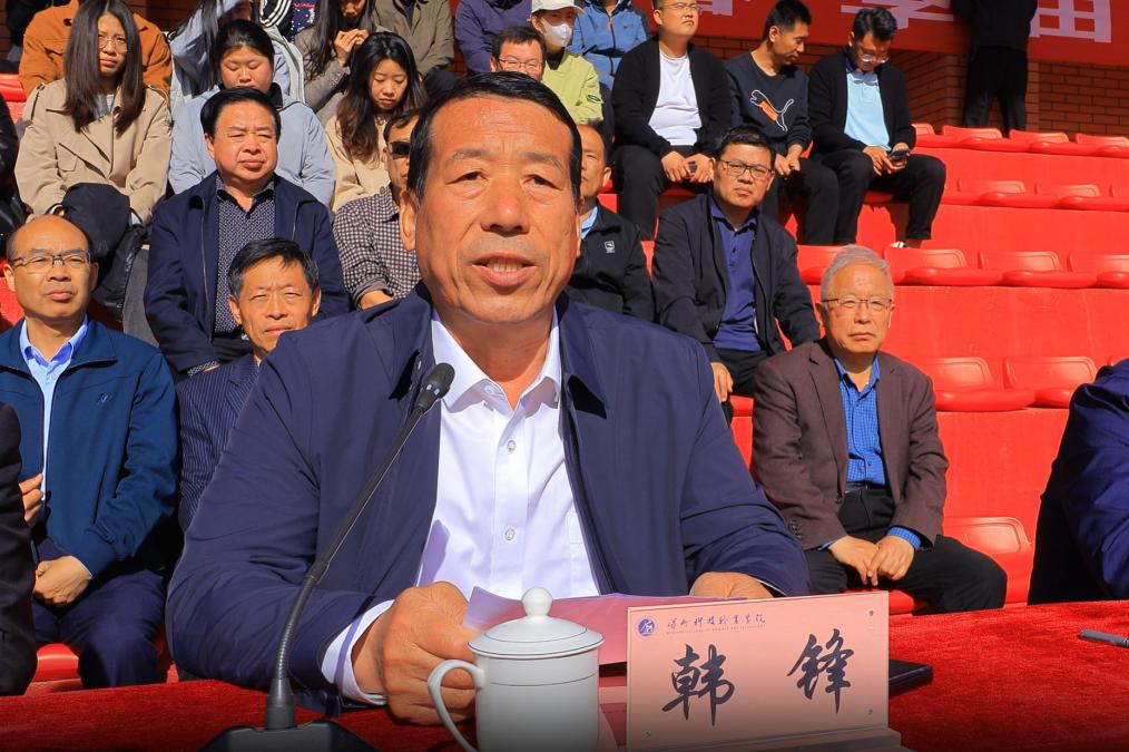 党委书记韩锋在开幕辞中表示体育是学校教育的重要组成部分,是全面推进素质教育的重要内容。希望每一位运动员,认真落实安全第一、友谊第一、比赛第二的参赛方针,发扬“更高、更快、更强”的奥林匹克体育精神,以热烈洋溢的喜悦心情和勇于拼搏的奋斗精神参加本次运动会;希望全体裁判员严格遵守竞赛规则,认真履行裁判职责,确保运动会顺利进行;希望全体工作人员坚守岗位,热情服务,为运动会的圆满成功提供有力保障;希望全体师生积极为运动员加油助威,营造良好的比赛氛围,把本届运动会办成一次 “安全、文明、精彩、圆满” 的体育盛会。让我们以本次运动会为契机,在运动中增强体质,在运动中磨练意志,在运动中享受快乐,以更加饱满的热情、更加昂扬的斗志、更加健康的体魄,投入到学习和工作中去,为实现中华民族伟大复兴的中国梦贡献自己的力量!