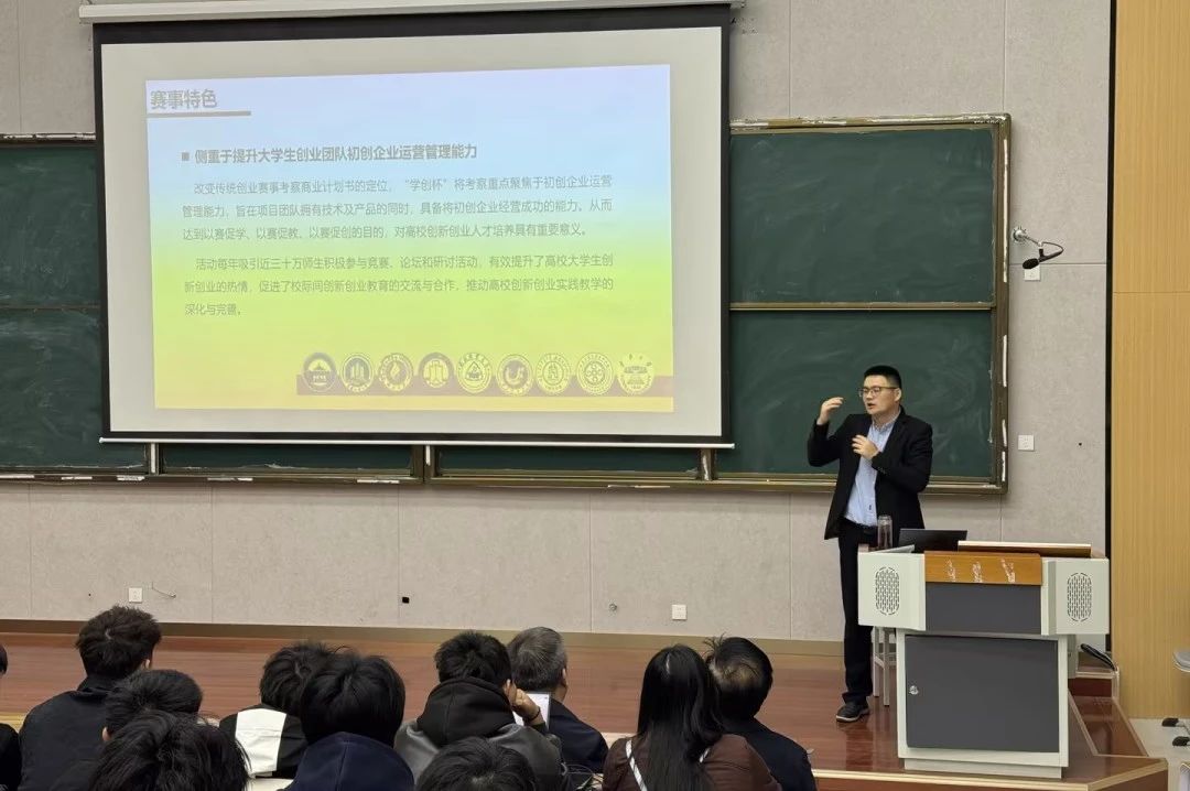 王宏景详细解读了第十二届“学创杯”的新赛程变化,并通过《创业之星》模拟系统演示了企业创立、运营决策、财务分析等核心环节的操作流程,强调“灵活调整策略”和“精准市场判断”的重要性。