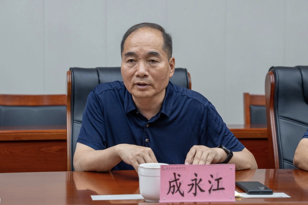随后,东营科技职业学院成永江校长详细介绍了学校的办学理念、专业设置、师资队伍建设、人才培养模式等方面的相关情况;万声现代服务业产业学院邱运乾经理分享了产业学院的运营情况,包括校企合作模式、人才培养特色、实践教学成果等内容;经济管理学院党支部书记王琪介绍了学校在校企合作方面的具体举措、合作项目以及取得的成效。