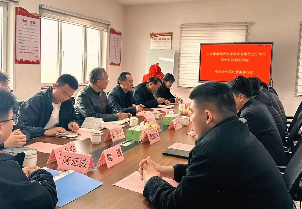 在山东鑫诚现代农业科技有限责任公司校企合作签约暨揭牌仪式上,副总经理刁洪胜、办公室主任张传涛、运营总监周洪廷以及各部门代表出席活动。刁洪胜表示公司通过与学校合作,将充分发挥自身优势,为学生提供丰富的实践机会和优质的教学资源,助力学生成长成才。张道祥重点介绍了学院对于培养现代服务业专业人才的重视和理念,始终坚持人才培养以服务地方、服务行业、服务企业为立足点,此次合作将为学生提供更加深入的实践平台,在真实的实训环境中锻炼自己的专业技能,为未来职业发展打下坚实的基础。随后,双方代表共同签署合作协议,主要领导为合作基地揭牌。仪式结束后,企业方引领校方一行人员对基地进行参观考察。